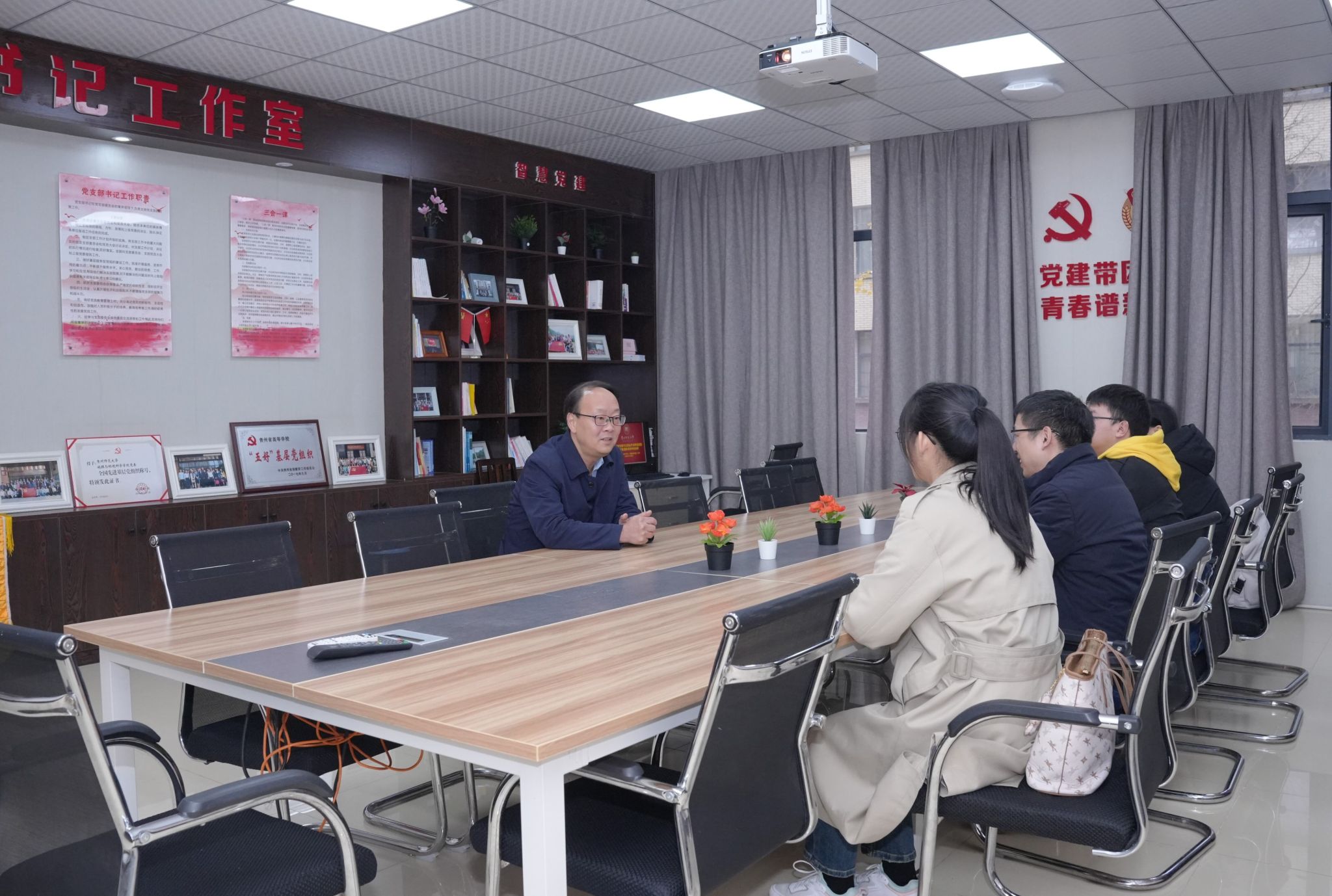 在学院支部书记工作室,肖远平听取了所联系辅导员朱大运关于2023届自然地理与资源环境班同学的就业情况报告,听取了2020级地理科学班班长、所联系寝室的寝室长、所联系的学生近半年来的学习、生活、考研规划的情况汇报。肖书记详细询问了师生近期思想、学习和工作情况,解答了同学们遇到的问题和困惑,对大家当前取得的成绩表示肯定,对大家提出殷切希望。他指出,辅导员是学生成长路上的重要引路人,希望辅导员老师们切实帮助学生做好人生规划,让每一名从师大扬帆启航的学生都能行稳致远。他鼓励同学们赓续中华民族红色血脉,坚定理想信念、厚植家国情怀,发挥专业优势,在从教、考研、报考选调生等多个领域彰显风采。