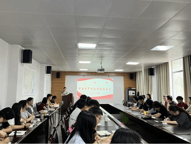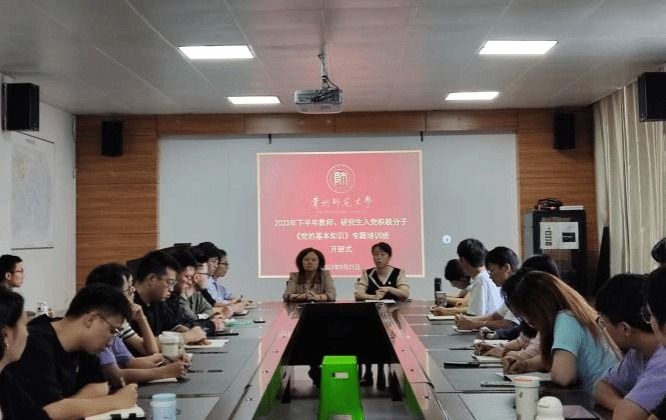 为进一步加强研究生入党积极分子培养教育,教育引导研究生入党积极分子学习党的基本知识和基本理论,用习近平新时代中国特色社会主义思想武装头脑,做习近平新时代中国特色社会主义思想的坚定信仰者和忠实实践者,不断提升入党积极分子队伍质量,9月25日至10月10日,学校举办2023年研究生入党积极分子《党的基本知识》专题培训班(宝山校区),本次培训由必赢242net官网(喀斯特研究院)党委分党校承办,必赢党委书记杨建红,院党委副书记、院长周忠发,院党委副书记郭锐,特邀音乐学院党委副书记潘瑜共同为学员授课。