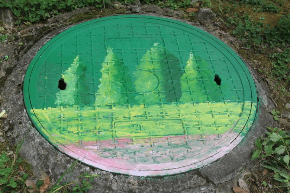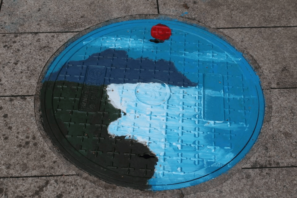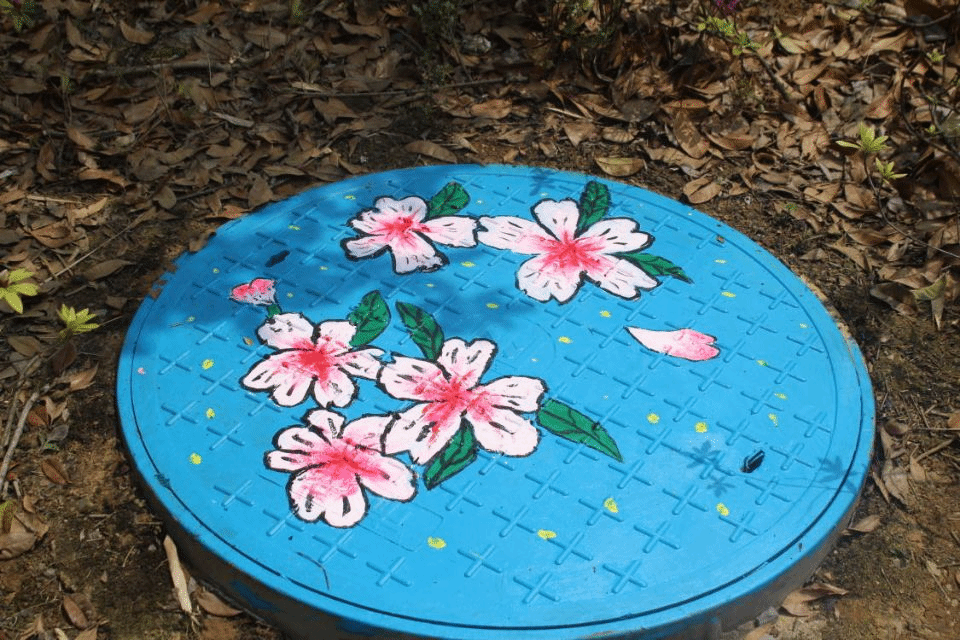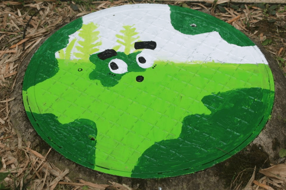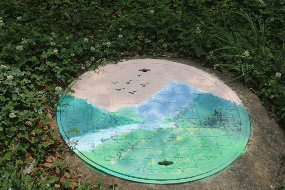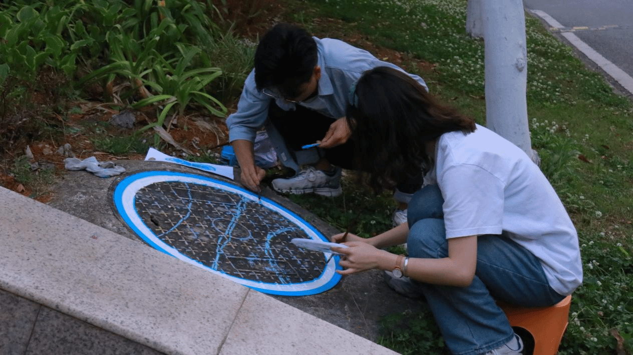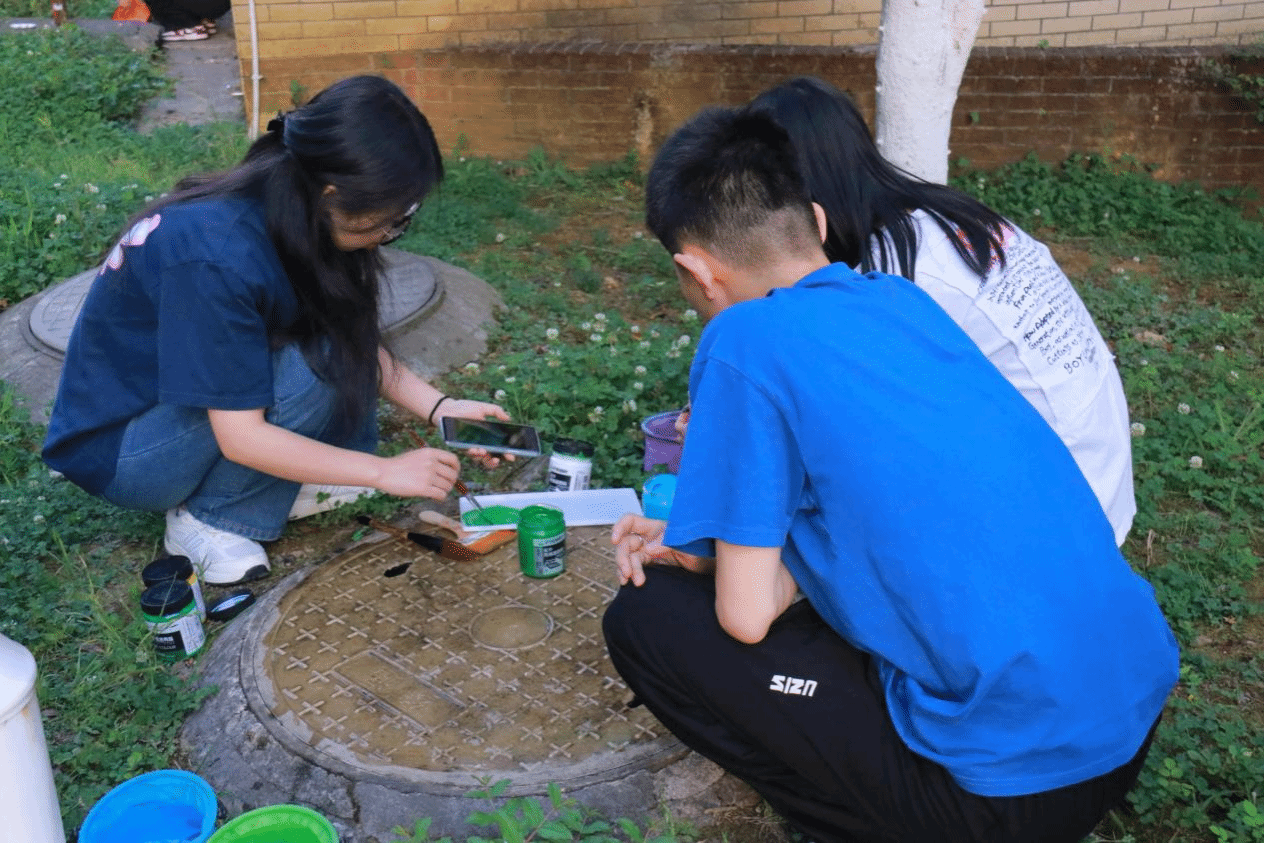 同学们依托学院与专业特色,手执画笔,一笔一画尽情挥洒描绘,将心中的“奇思妙想”呈现眼前,井盖变“景”盖,原本单调暗沉的井盖华丽变身为五彩斑斓的画作。一幅幅美丽的画作展现了春天的盎然与生机,也悄悄蕴含着夏天的浓郁与热情。阳光透过叶隙洒落在井盖上,在“青山绿水”中,倒影着迷人的光芒,形成学院一道靓丽的风景线。