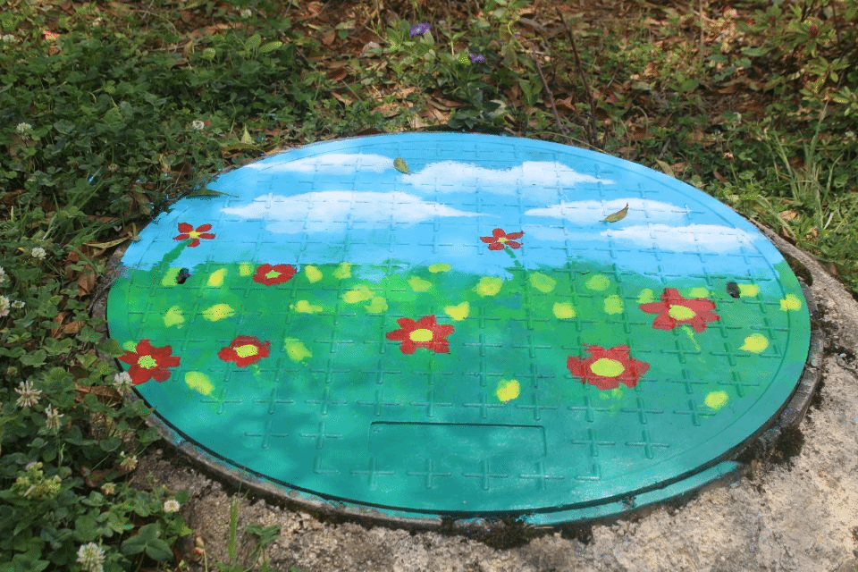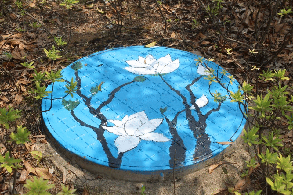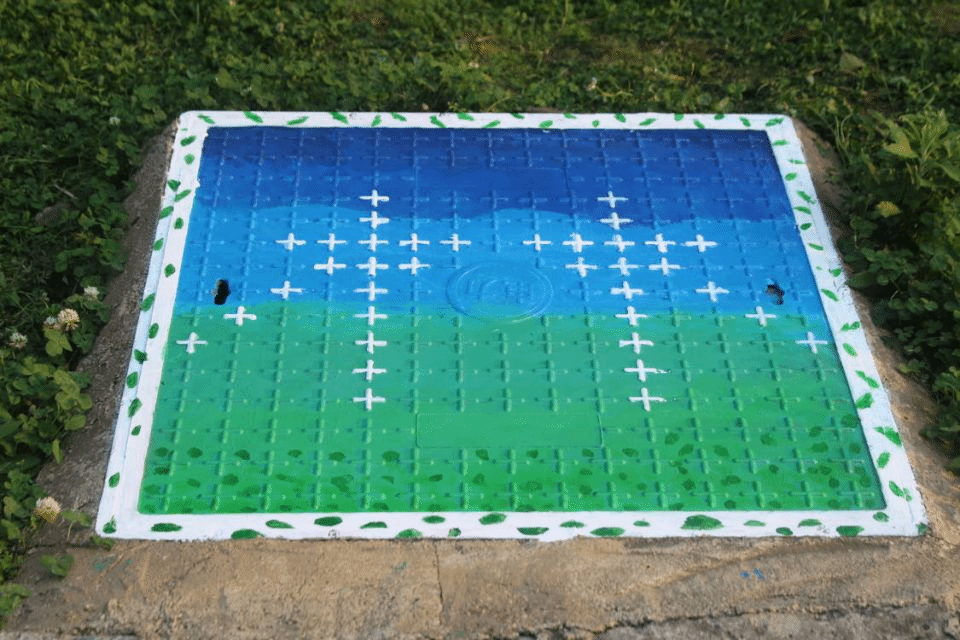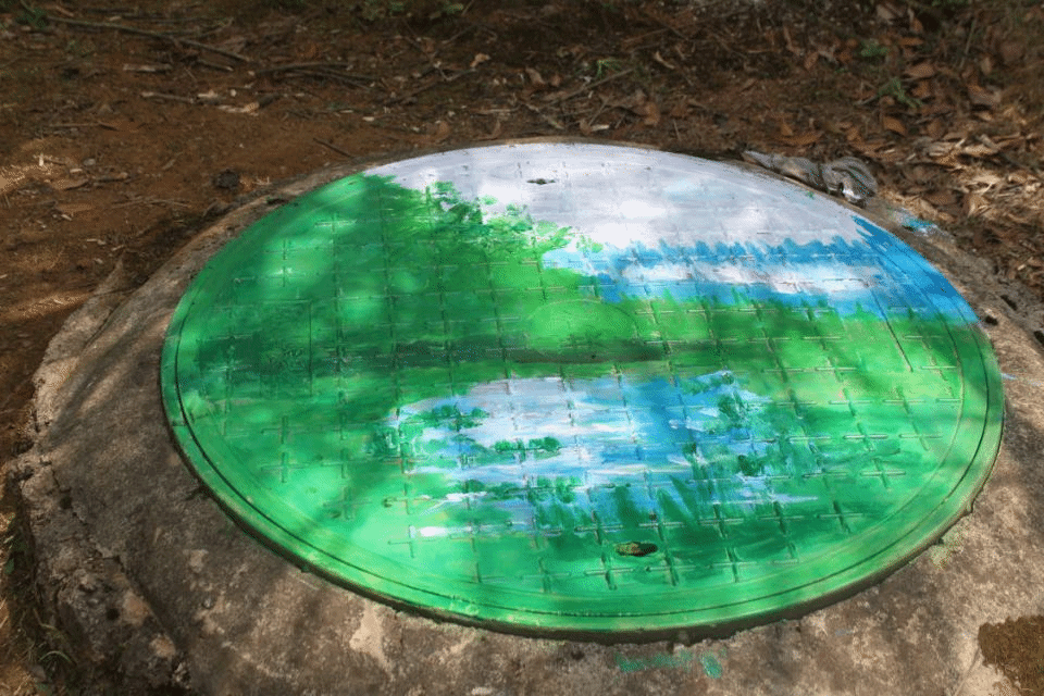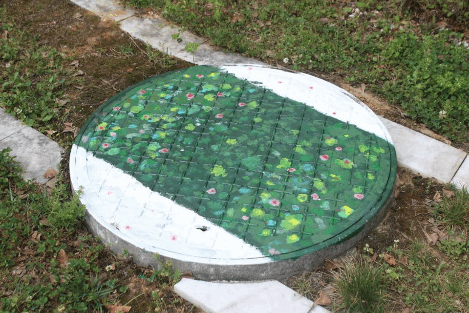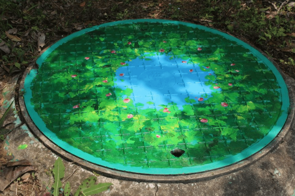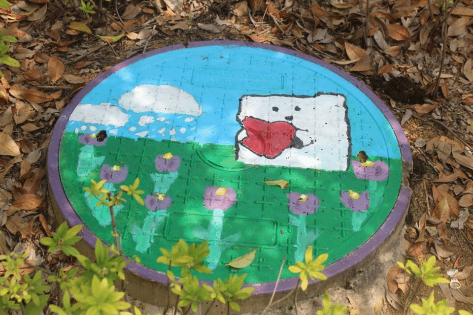 同学们依托学院与专业特色,手执画笔,一笔一画尽情挥洒描绘,将心中的“奇思妙想”呈现眼前,井盖变“景”盖,原本单调暗沉的井盖华丽变身为五彩斑斓的画作。一幅幅美丽的画作展现了春天的盎然与生机,也悄悄蕴含着夏天的浓郁与热情。阳光透过叶隙洒落在井盖上,在“青山绿水”中,倒影着迷人的光芒,形成学院一道靓丽的风景线。