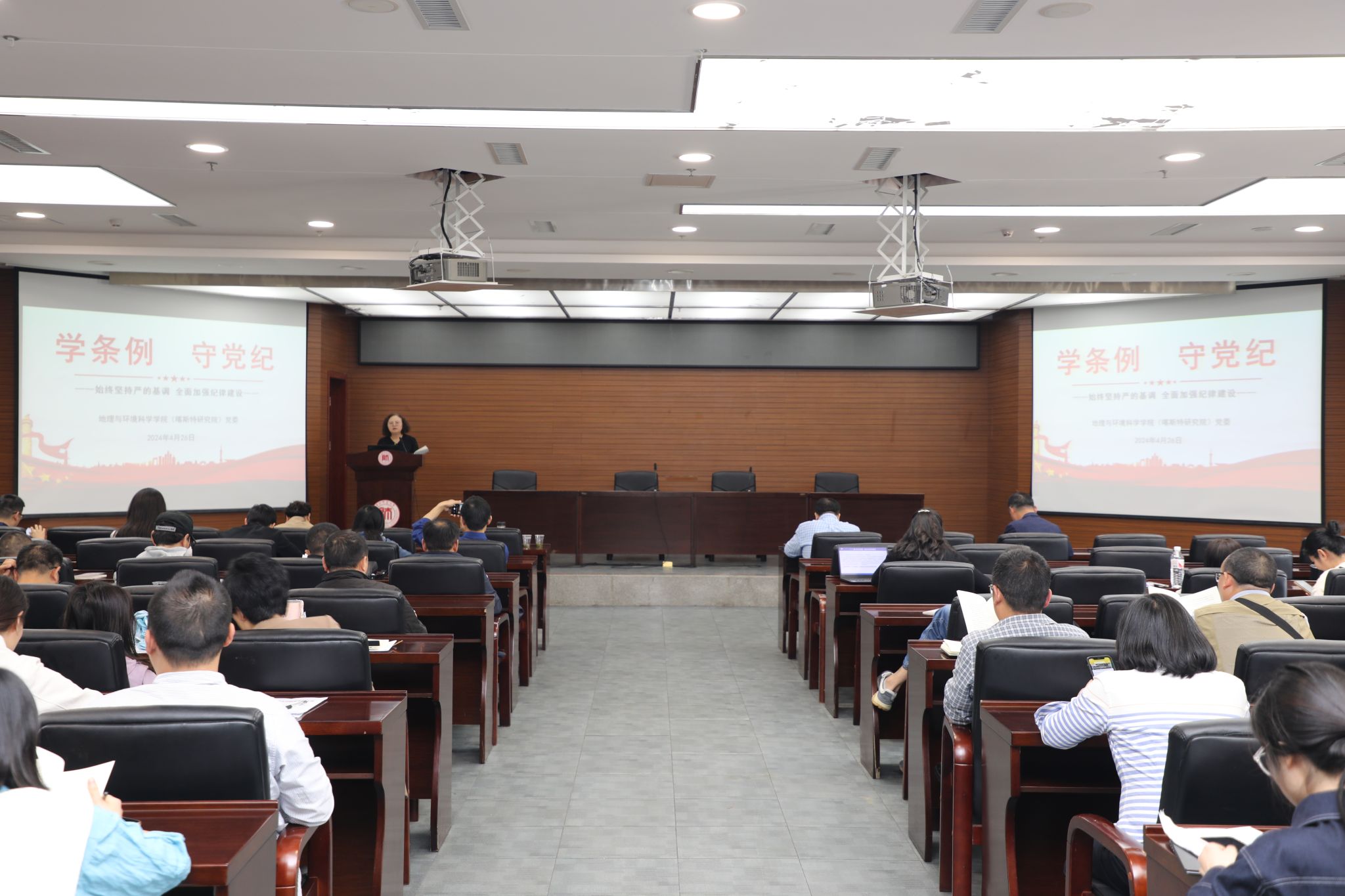 4月26日下午,院党委书记杨建红在花溪东校区会议中心二楼会议室为全院教师党员上党纪学习教育主题党课。
