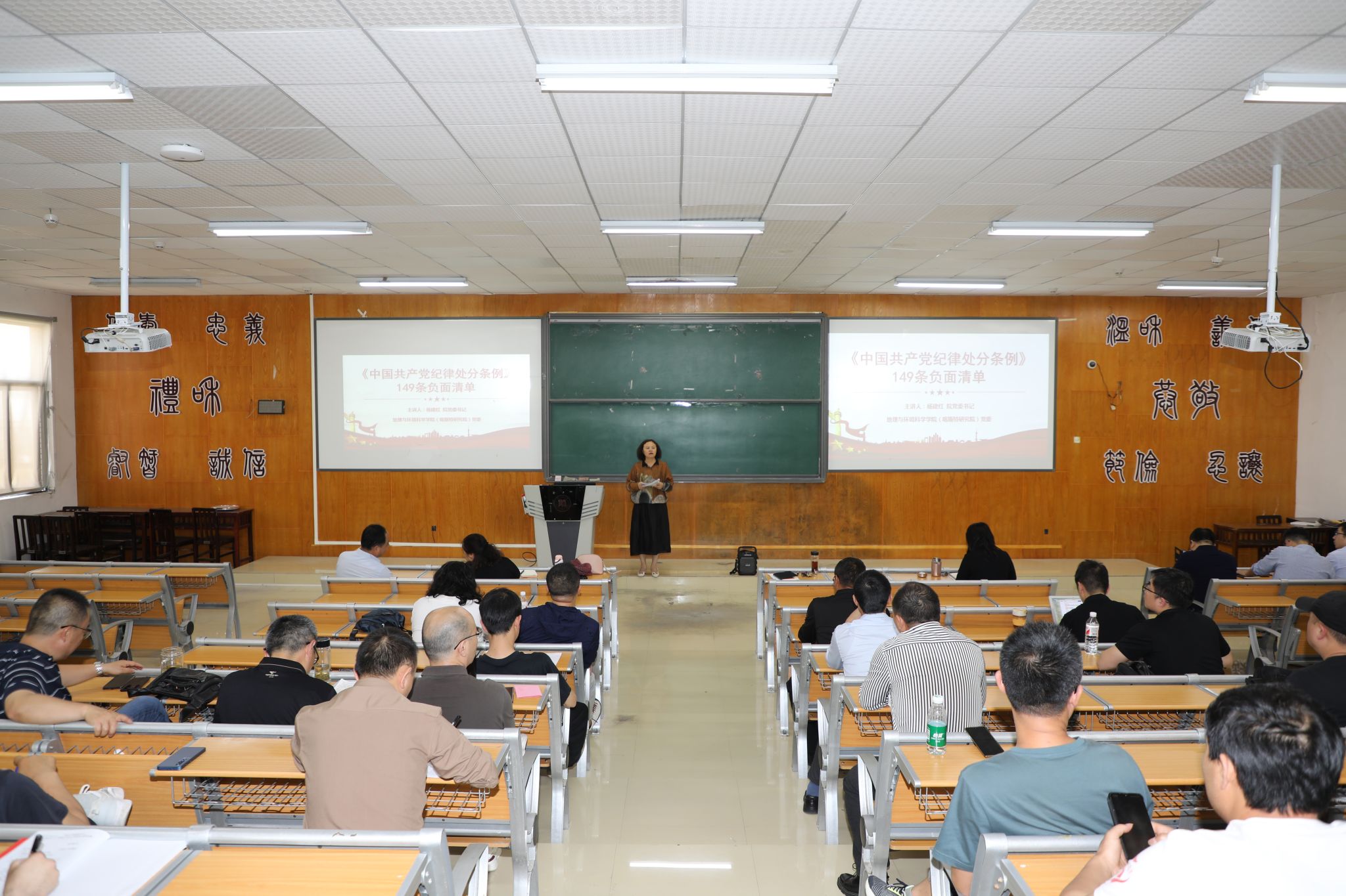 5月24日下午,院党委书记杨建红在东校区地环楼3501教室为院党政班子成员、科级党员干部、党支部书记及委员、教师党员讲授党纪学习教育纪律党课。