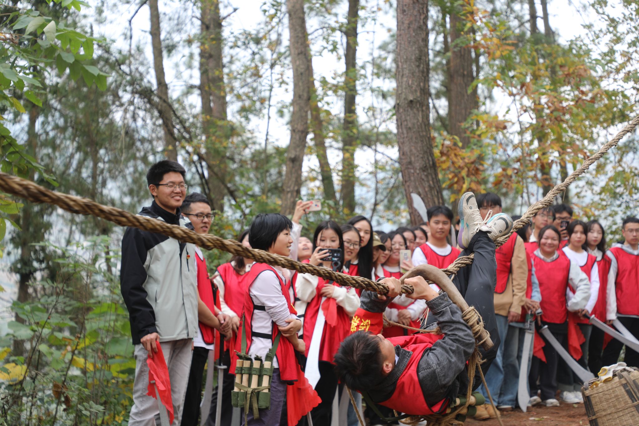 学生党员们在迎军广场重温入党誓词,随后了解观游索桥红军渡的故事,现场听取“红军送铺盖”“五大娘造饭”“石三娘摆渡”等感人的红色故事,并体验了战役模拟情景线路,在观游索桥红军渡的战役模拟区,学生支委通过参与战壕行进、模拟战斗遭遇、休整训练、模拟武器使用、书写革命标语以及体验军民协作等活动,真切感受到了长征途中的艰苦卓绝与英雄气概,深刻感悟革命先辈为国家独立而百折不挠、艰苦奋斗的历程和红军长征途中的军民鱼水情。