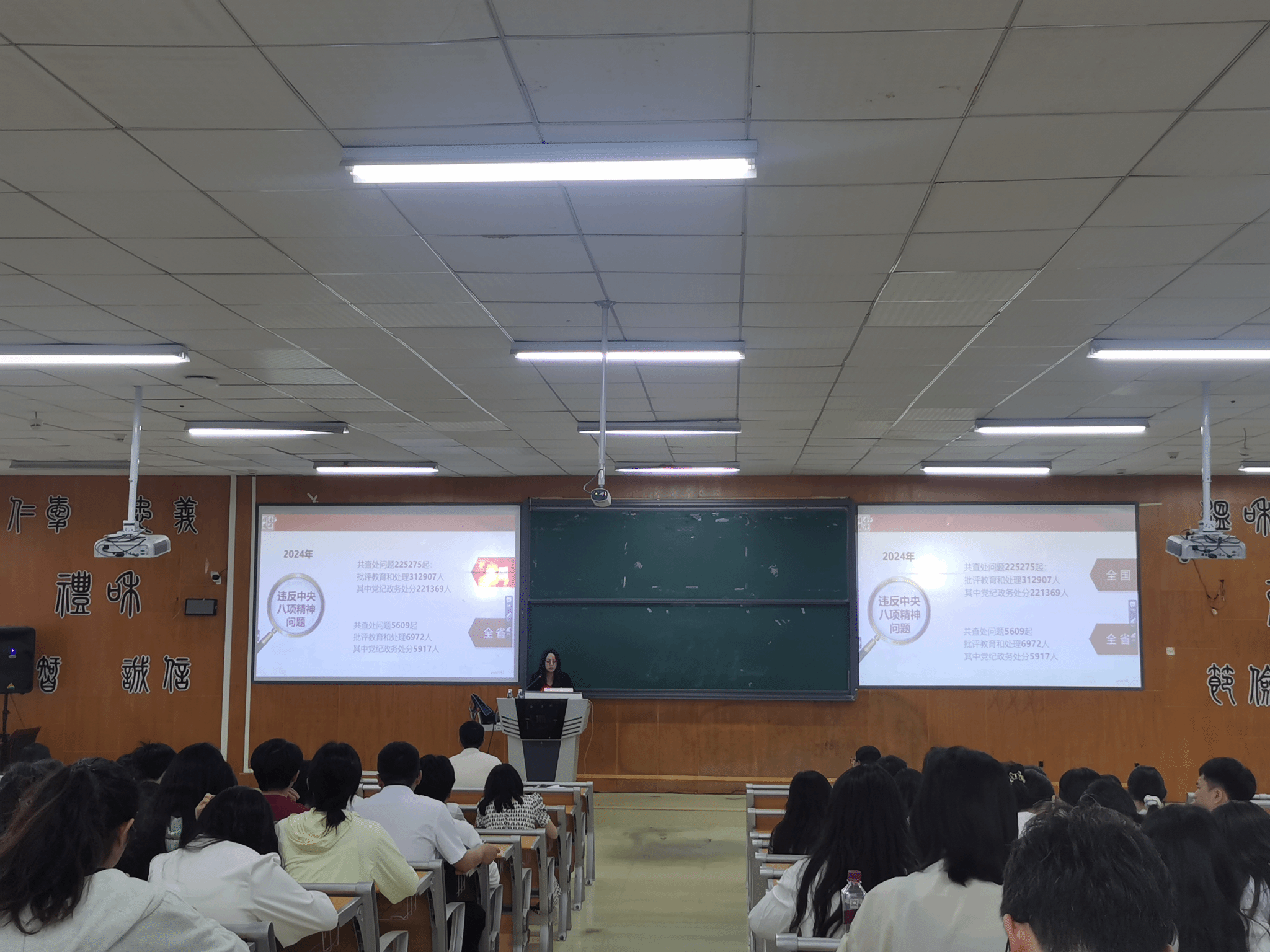 两位主讲老师围绕“深学笃行习近平总书记关于加强党的作风建设的重要论述,持续擦亮中央八项规定‘金色名片’,以作风建设新成效推动学校事业高质量发展”这一主题,从“为什么要强调作风建设”、“什么是中央八项规定与中央八项规定精神”、“如何开展好深入贯彻中央八项规定精神学习教育”三个方面系统讲解了作风建设的重要性、中央八项规定精神的核心要义以及中央八项规定实施以来取得的成效,并结合高校常见的违反中央八项规定精神的具体体现及典型案例进行了深入剖析,老师们在授课时强调,全体党员同志要紧密团结在以习近平同志为核心的党中央周围,始终把中央八项规定作为长期有效的铁规矩、硬杠杠,以马不离鞍、缰不松手的定力,以反复抓、抓反复的韧劲推动中央八项规定精神化风成俗,持续擦亮中央八项规定“金色名片”,以作风建设新成效推动学校事业高质量发展。