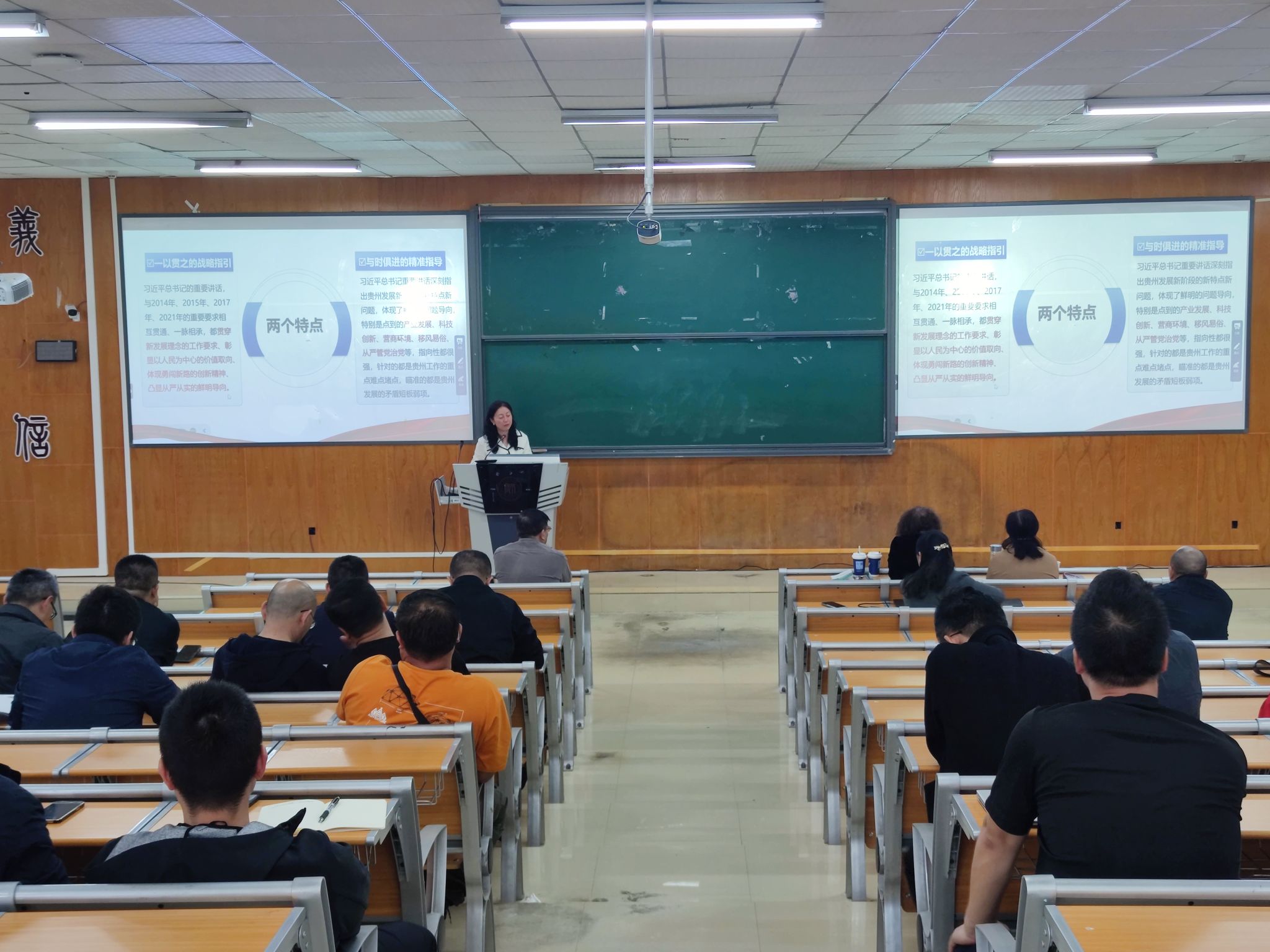 两位老师以“深入学习贯彻习近平总书记在贵州考察时的重要讲话精神”为主题,从“一以贯之的战略指引,与时俱进的精准指导”的两个特点以及“习近平总书记对贵州发展的总体要求,习近平总书记关于坚定不移走高质量发展之路的重要指示精神,习近平总书记关于加强文化建设和文明新风培育的重要指示精神”等七个重点,将理论结合实际,联系必赢跨越式高质量发展情况,带领大家学习领会习近平总书记重要讲话的丰富内涵、精神实质和实践要求。