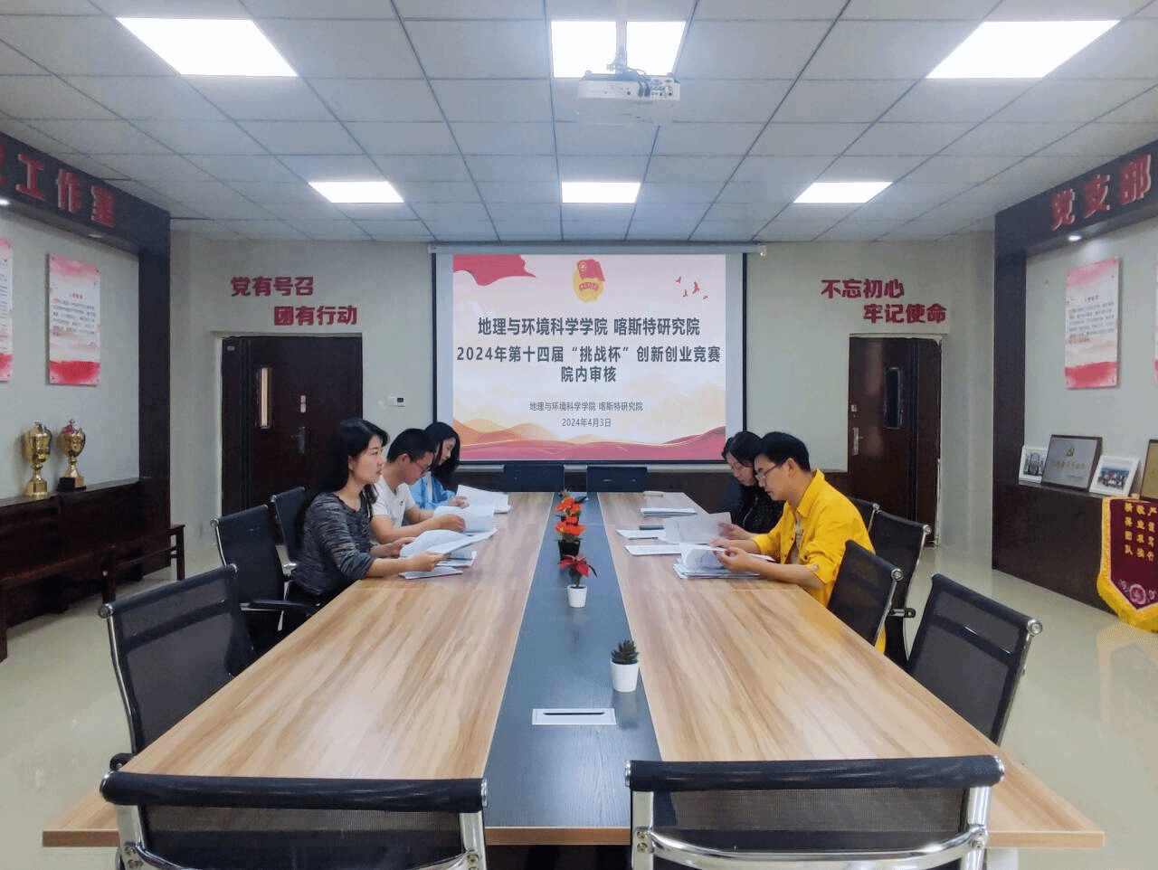 为引导和激励大学生通过广泛的社会实践、深刻的社会观察,培育创新精神和创业意识,营造全院良好的创新创业氛围。2024年4月3日必赢242net官网(喀斯特研究院)于支部书记工作室开展2024年第十四届“挑战杯”中国大学生创业计划竞赛初赛。必赢党委组织员(正处级)、副书记郭锐、园林系主任吴强、院团委书记朱琳、辅导员李维、院团委副书记李继琼担任评委。