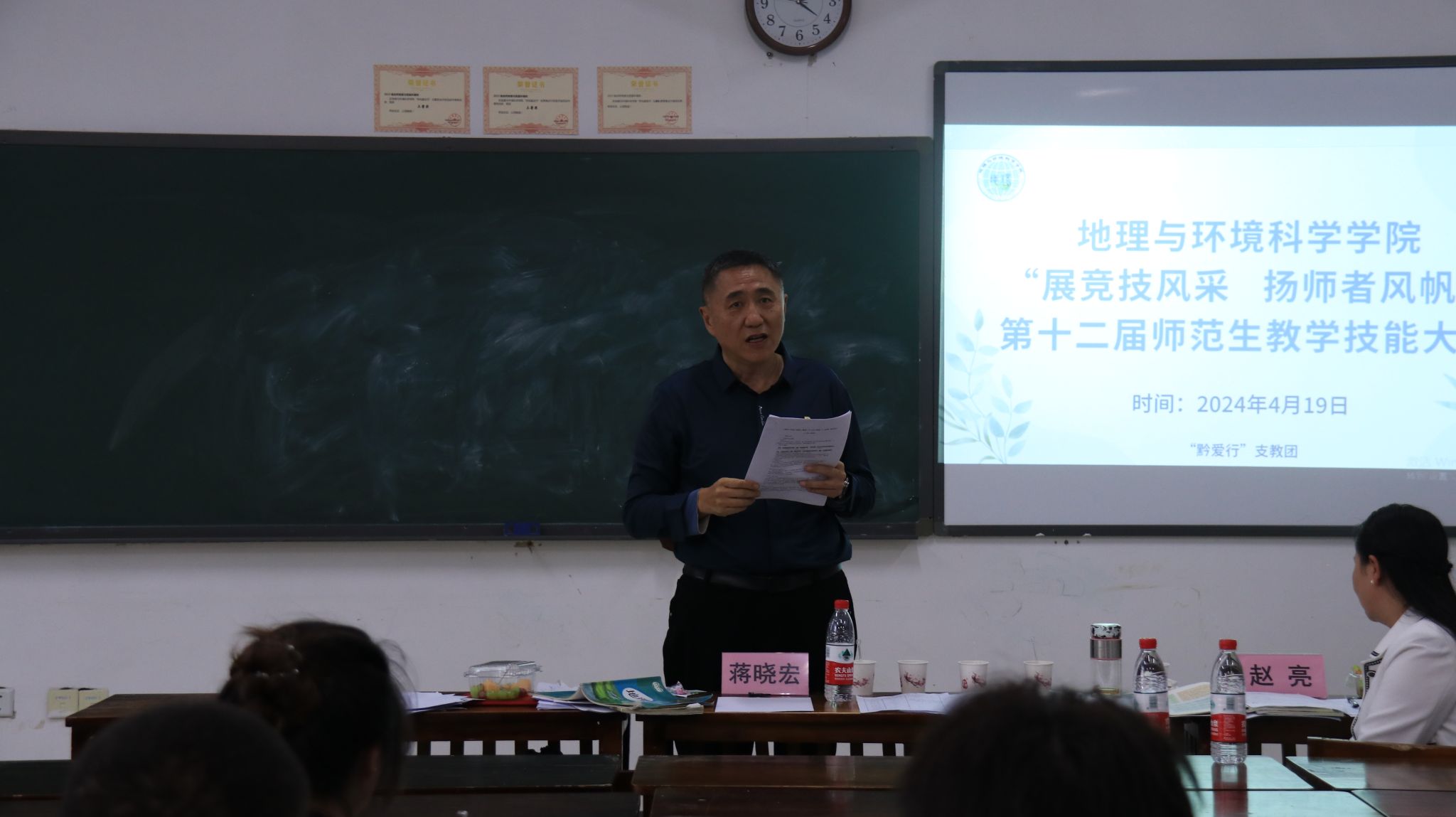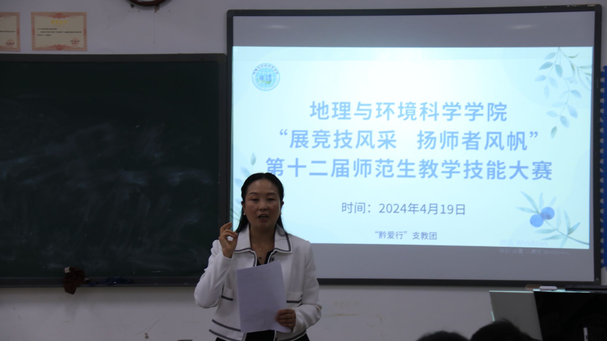 2024年4月19日下午,必赢242net官网举办了“展竞技风采,扬师者风帆”第十二届师范生教学技能竞赛。此次竞赛诚挚邀请了原贵州省教育科学院地理教研员张慧、原贵阳市第三实验中学高级教师黄桂英、原贵阳市第二十八中学校长杨华嵩、贵阳市第三十九中学党总支书记蒋晓宏、贵安新区新艺学校党支部书记刘伟、贵阳市民族中学正高级教师青渝、贵阳市第二中学地理正高级教师罗文攀、贵阳市教育科学研究所地理教研员张玉玲、北京师范大学贵安新区附属学校党总支书记安家堃、贵阳市第二十四中学校长赵亮、贵阳市花溪区溪南高中副校长杜鹃、必赢242net官网附属中学地理高级教师张艳、必赢242net官网附属中学德育处主任罗家杨、贵阳市第二十六中学地理教师邱兵贵、花溪区教育培训研究中心教研员龙黔、贵阳市教育科学研究所高中地理教研员薛佳佳共16位校外专家及必赢242net官网地理科学系教师焦树林、容丽、李亦秋、何红、向刚、朱珂,人文地理与城乡规划系教师邓玲玲、李娟共8位校内教师担任评委。院党委书记杨建红、副院长赵翠薇亲临现场观摩指导。