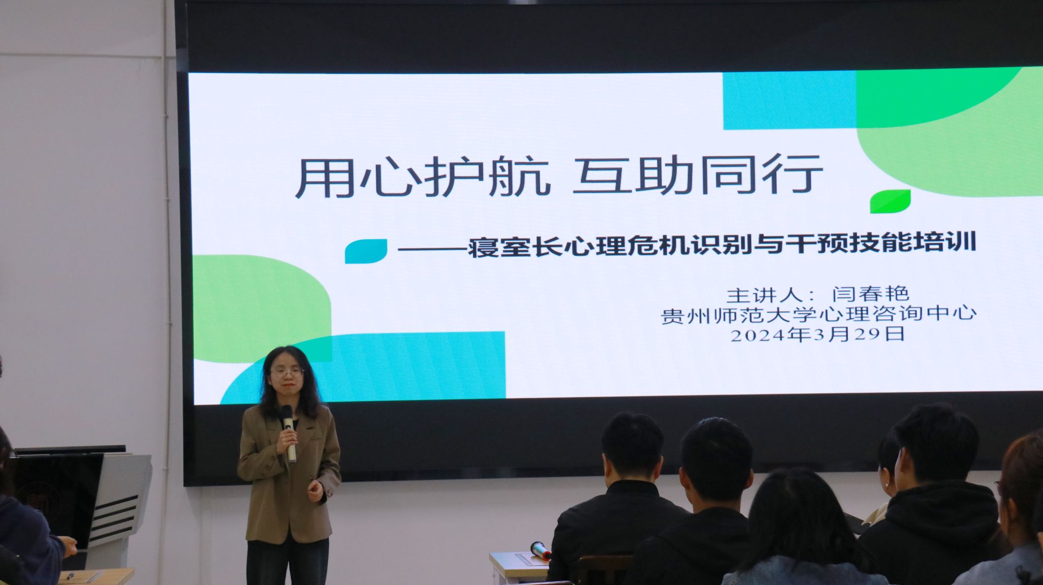 学校心理咨询中心闫春艳通过破冰游戏,为寝室长带来《用心护航 互助同行——寝室长心理危机识别与干预技能培训》,引导寝室长们认识自身在心理工作中的作用,学会对常见心理问题、心理危机的识别与应对,获取正确的心理咨询预约流程。
