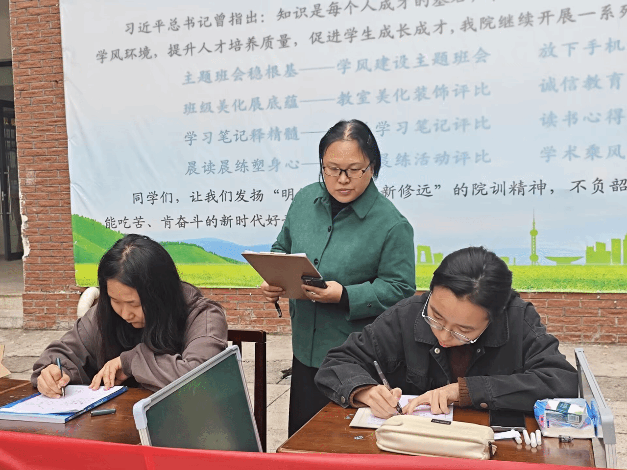 为进一步学习贯彻"大力弘扬教育家精神,加快建设教育强国"的精神理念,提高必赢师范生技能水平,营造优良学风,11月4日中午,由“黔爱行”支教团承办的必赢2024年"墨舞风华,笔韵千秋"书写技能大赛在地环园、3106、3108教室举行。教师王茂强、李亦秋、院教管科科长王磊担任评委。经过层层筛选,61名本科生参与现场书写比赛。
