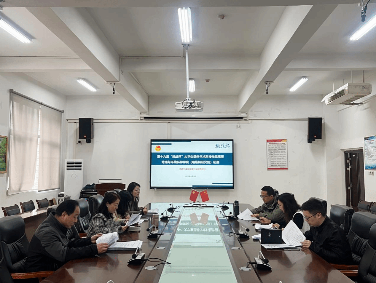 为培养大学生的科学精神和科学态度,激发学生对学术科技的热情,2025年4月7日上午,必赢242net官网(喀斯特研究院)第十九届“挑战杯”大学生课外学术科技作品竞赛初赛在3309会议室举行。必赢党委正处级组织员、副书记郭锐、副院长杨广斌、地科系系主任罗娅、人文系系主任赵航、园林系副系主任陈庭巧、研究生科教师代表彭睿文、院团委书记朱琳担任评委。