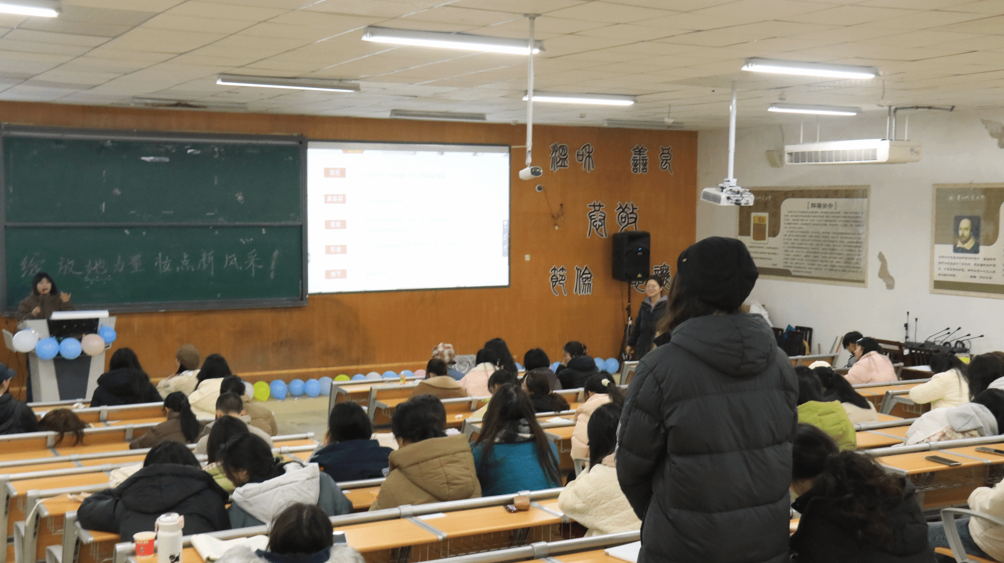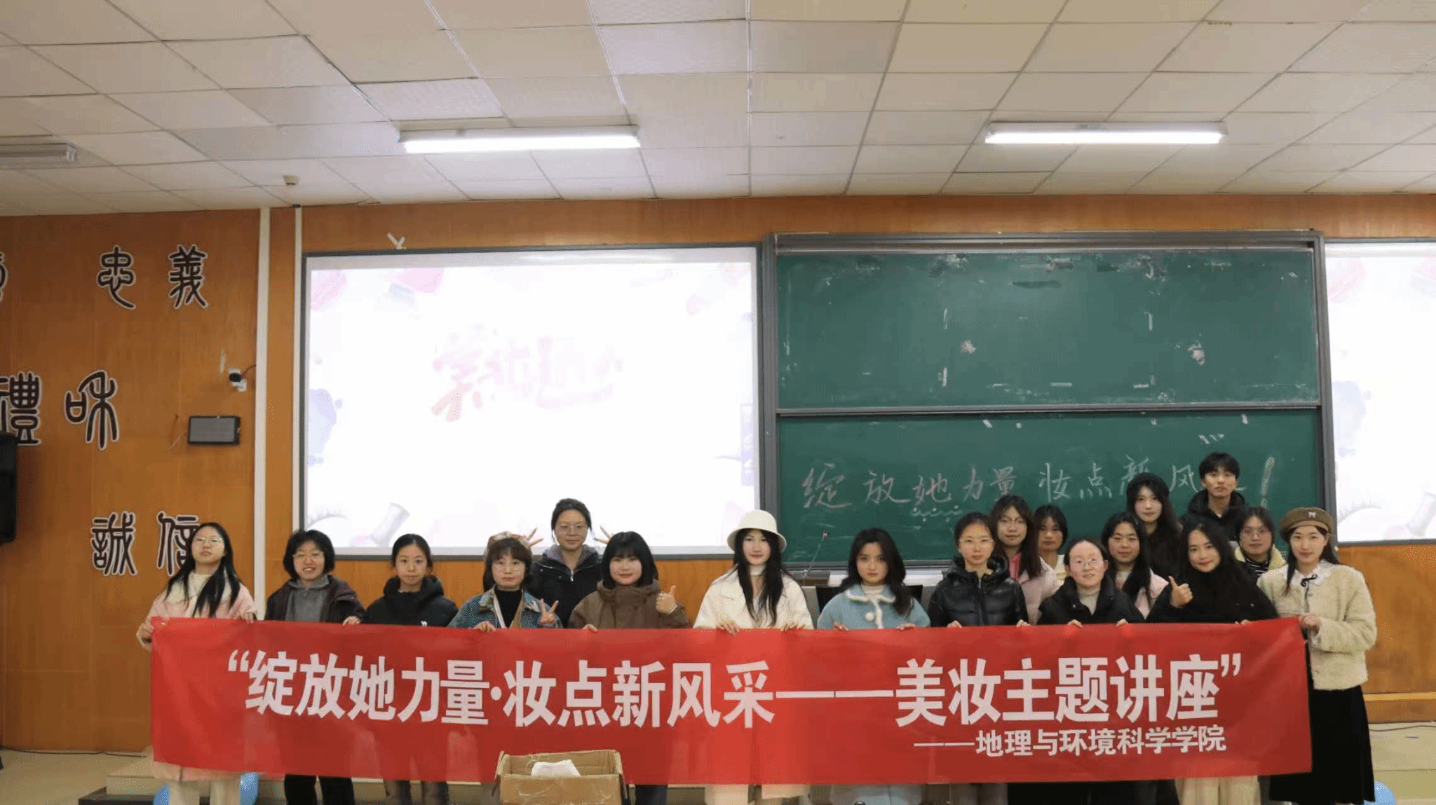当樱花初绽的春夜邂逅美妆盛宴,3月6日晚,由院学生会主办的女神节美妆讲座在3501教室举行。本次讲座邀请了22地科班耿娜、22人文班杨玉婷、23人文班姚玲、龙怡冰作为主讲嘉宾进行美妆技巧分享、穿搭法则解析、造型艺术互动,为现场的88名同学带来了一场沉浸式的美学体验。