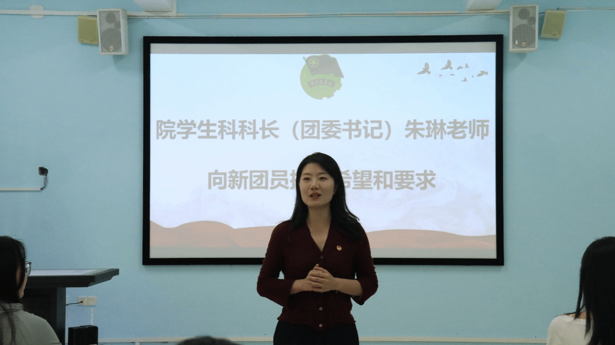 朱老师首先向新团员表示祝贺,并号召广大团员青年深入学习贯彻习近平总书记给新疆谢依特小学西部计划志愿者的回信精神,希望新团员牢记责任与使命,用实际行动践行青春誓言,将个人理想融入国家发展大局,争做能吃苦、肯奋斗、敢担当的新时代好青年,以"吃苦担当、永葆奋斗"的姿态为中国式现代化建设挺膺担当。