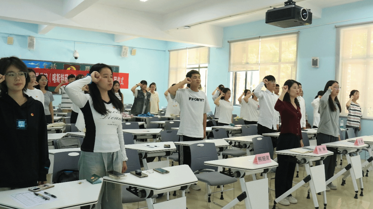 在院团委副书记熊娅淑的带领下,全体新老团员整齐列队,高举右拳,面向团旗庄严宣誓。