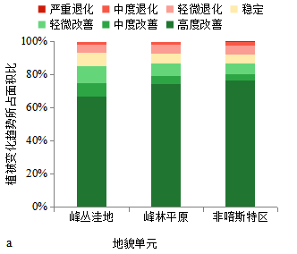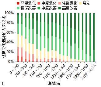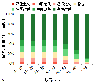 注:严重退化-0.0021 < S < 0.0004; 中度退化0.0004 < S < 0.0011; 轻微退化0.0011 < S < 0.0017; 稳定0.0017 < S < 0.0023; 轻微改善0.0023 < S < 0.003; 中度改善0.003 < S < 0.0054; 高度改善0.0054 < S < 0.0227 [34], S 表示NDVI变化的斜率。