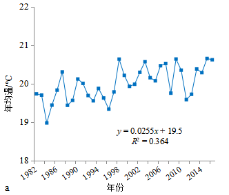 图4 广西1982—2016年气温和降雨的变化特征