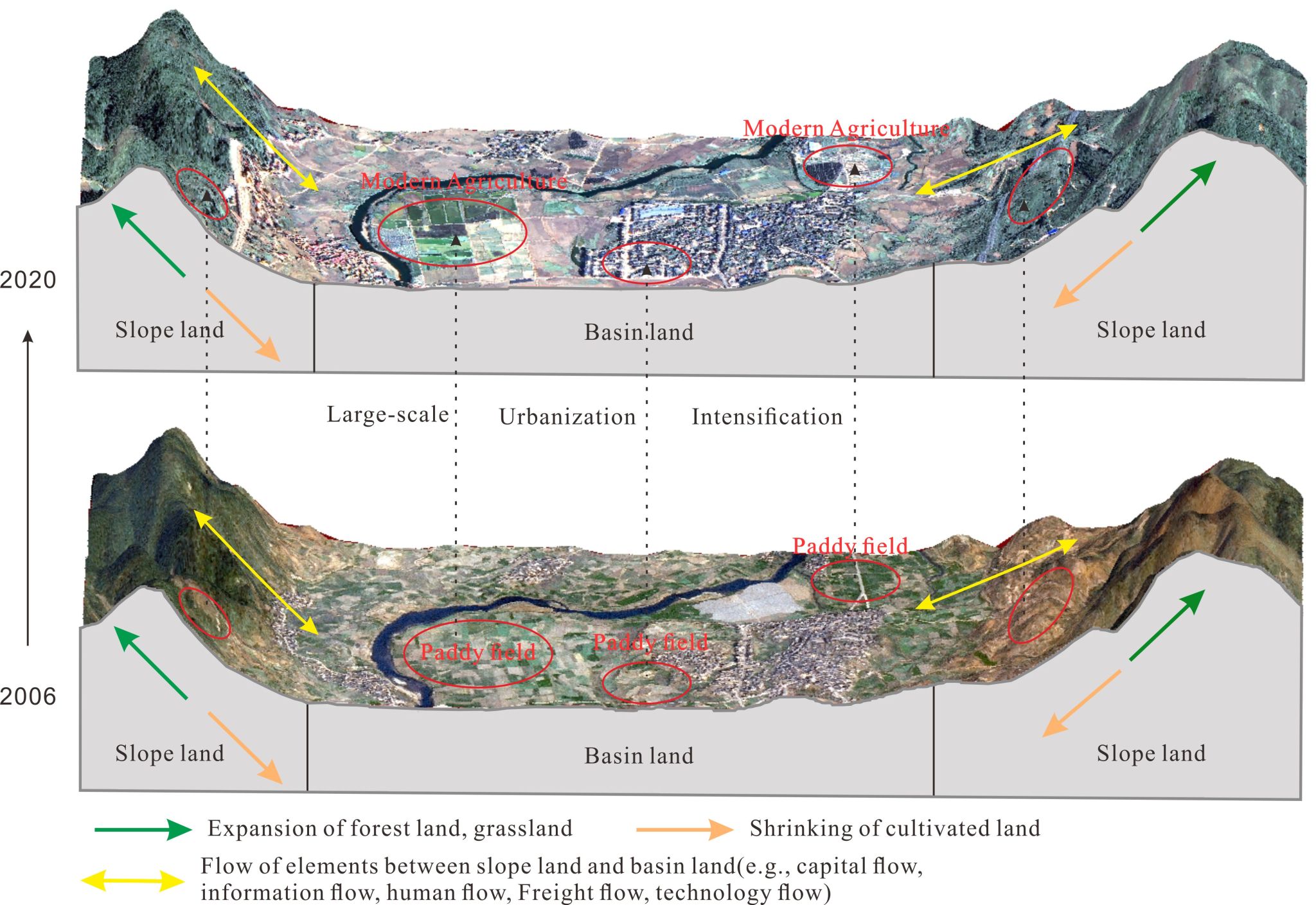 图13 中国岩溶山区坡耕地与山间坝子水田转型规律