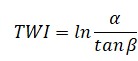 is the confluence area (m2/m) per unit contour length at any flow point through the surface; is the slope (°) at that point. The higher the TWI in areas with higher sink flows and lower slopes, the more the soil water is prone to saturation and surface runoff (Mhiret et al., 2019).