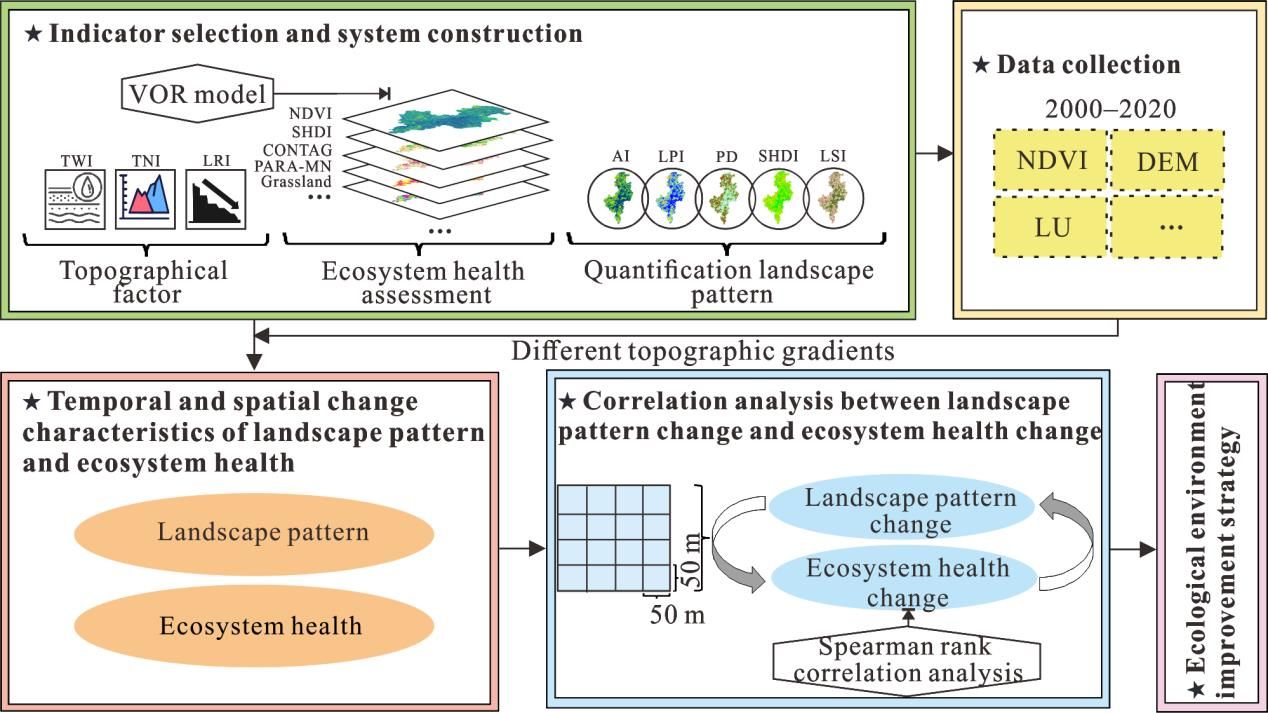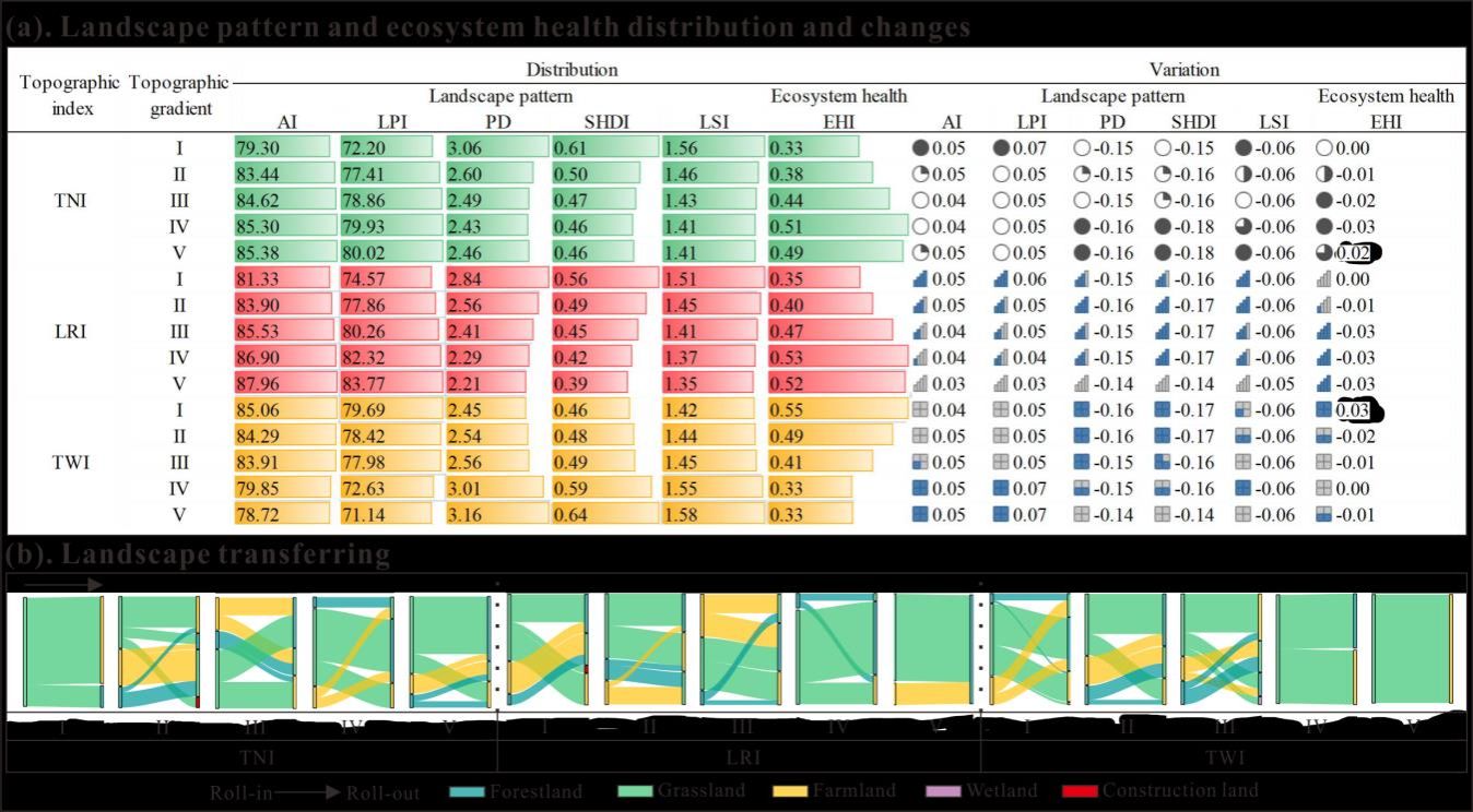 成果链接:本期推送“Effects of landscape patterns and their changes on ecosystem health under different topographic gradients: A case study of the Miaoling Mountains in southern China”文章原文下载:https://www.sciencedirect.com/science/article/pii/S1470160X2300938X