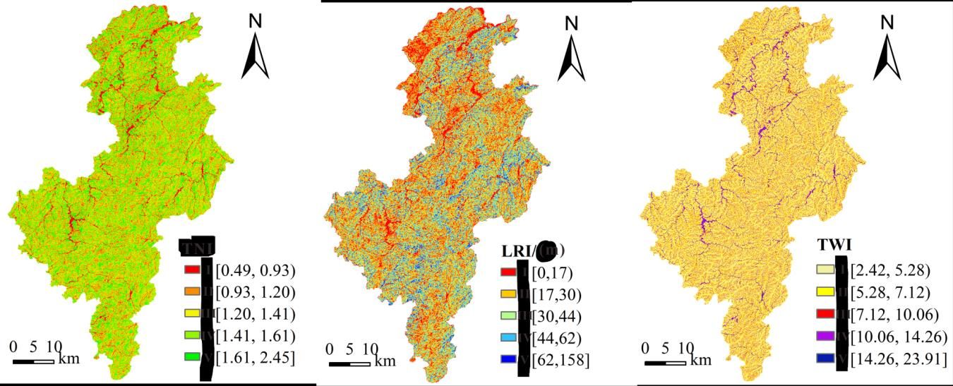 | E and are the elevations of any point (m) and the regional average elevation (m), respectively; S and are the slopes of any point (°) and the regional average slope (°), respectively. In areas with low elevation and low slope, TNI is small; in areas with high elevation and high slope, TNI is large; in areas with high elevation and low slope or low elevation and high slope and in areas with moderate elevation and slope, TNI is intermediate (Zang et al., 2019). |