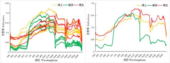 图 3各地物光谱曲线图