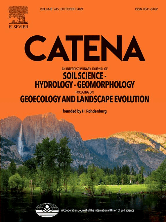 期刊简介:《Catena》期刊是一本土壤科学和地貌学的跨学科期刊,专注于地质生态学、景观生态学、景观演变和水文学,它旨在传播新的知识,促进更好地了解自然环境、过去和现在造成地貌的进化序列以及可能决定我们陆地环境命运的自然过程。该期刊属于中科院SCI一区 Top期刊,该杂志近三年影响因子分别为:2023年5.4、2022年6.2、2021年6.367。
