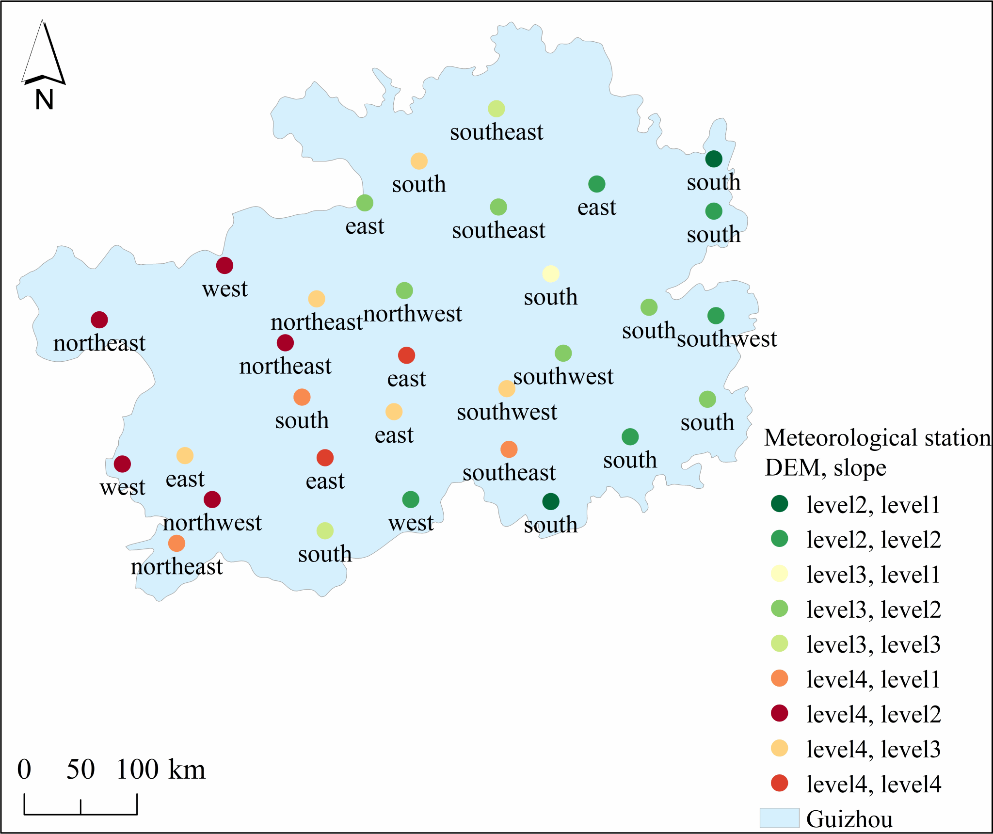 Fig. 1 Geomorphology of the study area and meteorological stations distribution.