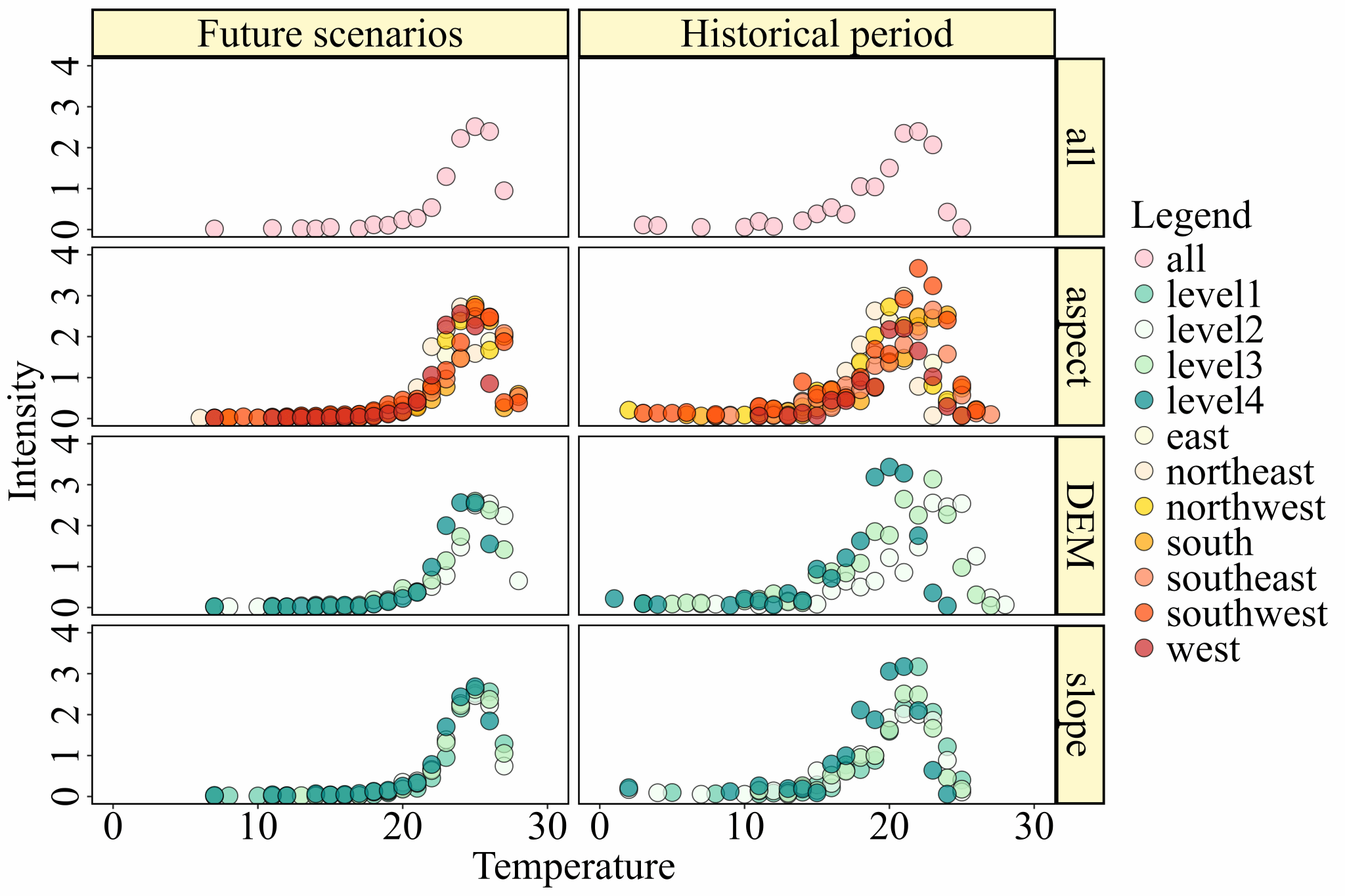 Fig. 11 Summary of the intensity of the response of extreme rainfall to changes in temperature.