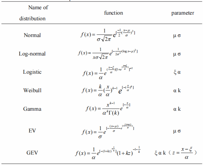 Distribution function and its parameters