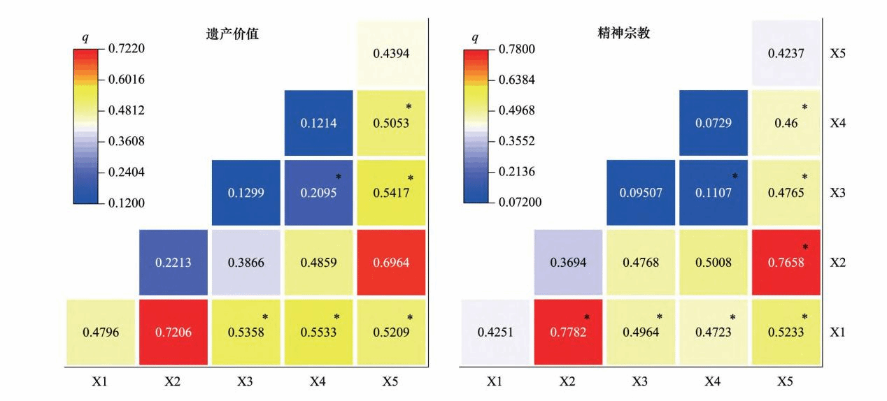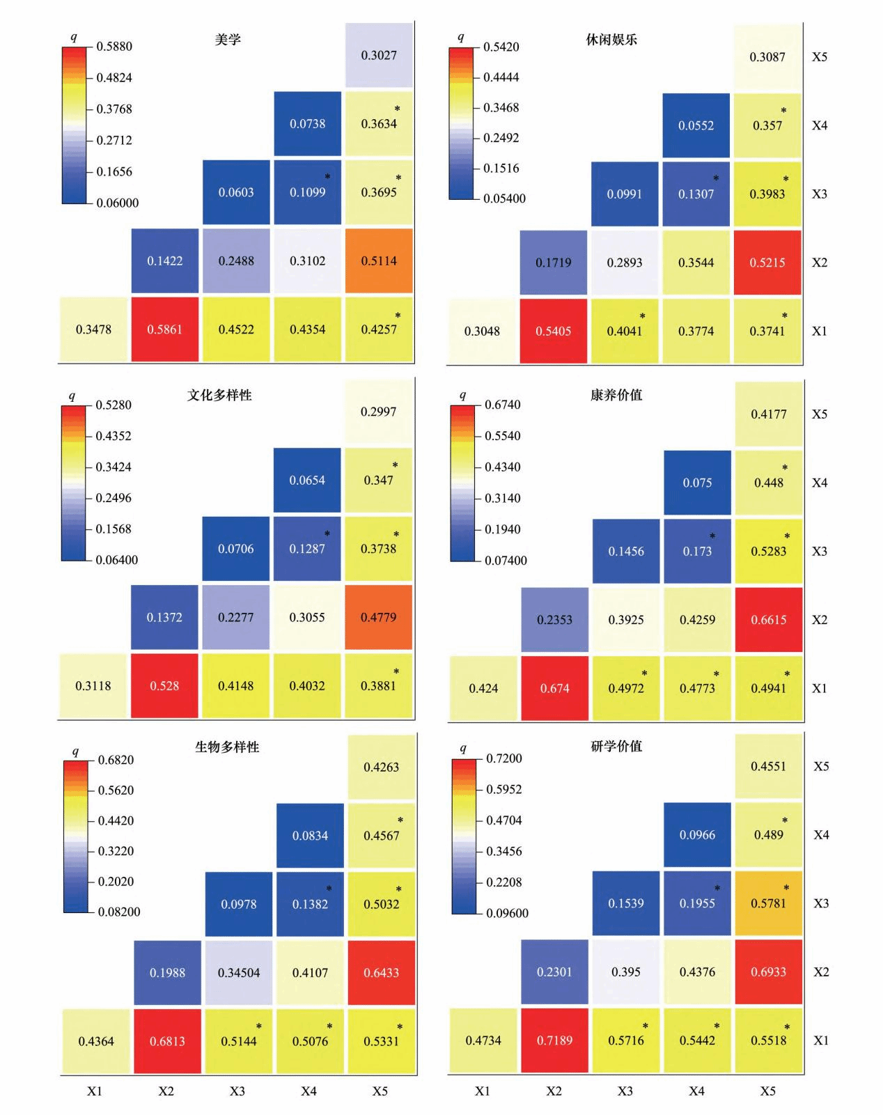 图 5 各生态系统文化服务影响因子交互探测结果热力图