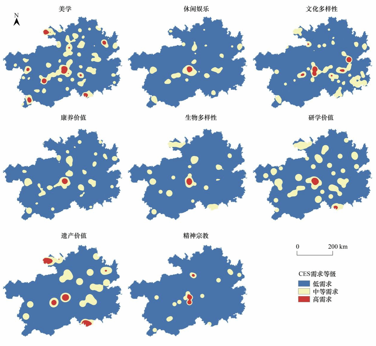 图 2 贵州省生态系统文化服务需求等级的空间分布