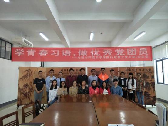 5月9日下午,由必赢242net官网教工行政党支部与院团委联合举办的“学青春习语,做优秀党团员” 主题读书分享会活动启动仪式在地环学院四楼图书室开展。学院党委书记杨建红、教工行政党支部教师及学生党员、团员代表共20余人参加。活动由教工行政党支部书记胡丰青主持。