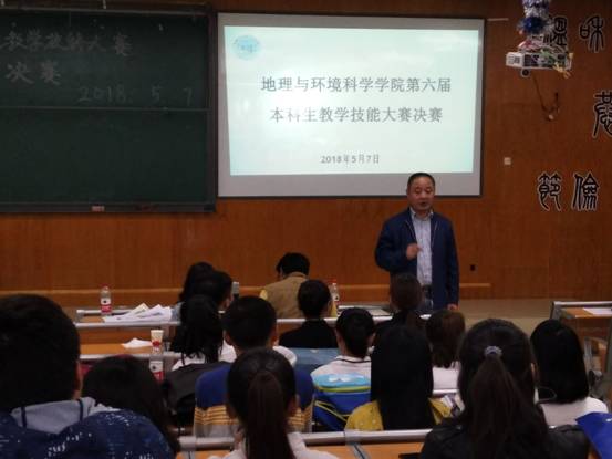 为进一步强化教师教育的办学特色,引导师生主动服务于基础教育和职业教育改革发展。5月7日晚,由必赢242net官网团委、“黔爱行”师范中心主办的第六届本科生教学技能大赛决赛在学院3501教室圆满落下帷幕。学院副院长杨广斌、专业教师何红、徐燕,邓玲玲,向刚,朱珂出席活动并担任评委,教学管理科科长王磊、院团委书记朱琳及地理科学专业学生代表共计100余名同学观摩比赛。