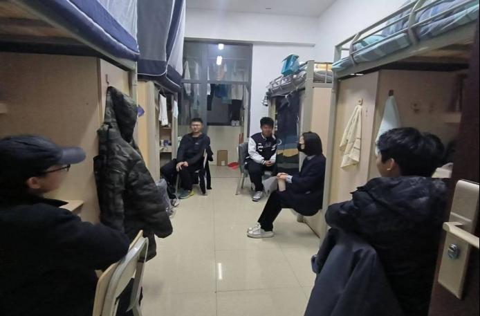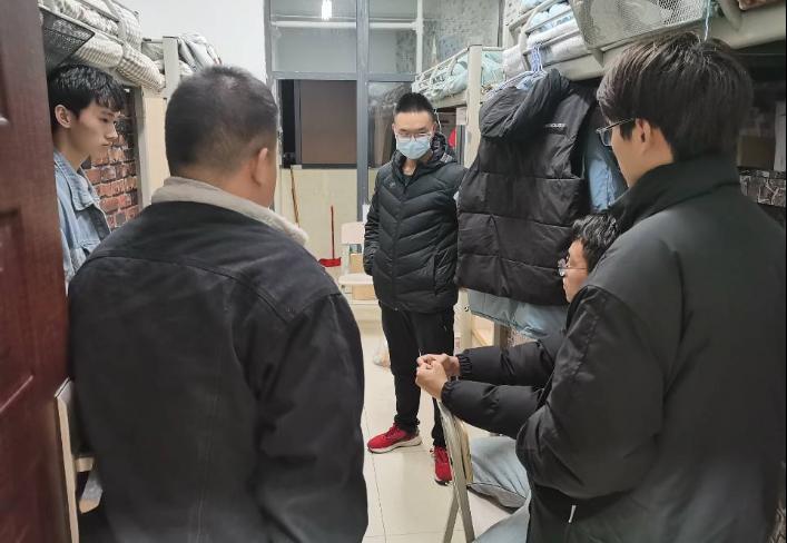期末来临,贵阳也进入降温季节,2022年下半年即将进入尾声。11月至12月,必赢242net官网开展学期末“关爱学生·叮咛入寝”常规走寝活动,活动由院党委副书记郭锐牵头,各专兼职辅导员负责所带班级,深入学生寝室与学生谈心谈话,从生活上、学习上对学生进行关怀和引领。