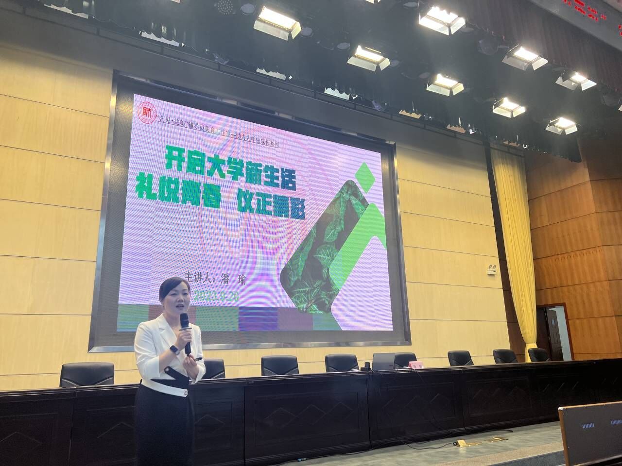 礼仪教育在大学生成长过程中具有重要功用。潘瑜老师以“礼悦青春 仪正精彩”为主题开展了新生礼仪培训,她指出,不学礼,无以立,并从个人形象基本礼仪出发,结合身边事例从社交沟通基本礼仪、教学场所基本礼仪、生活(办公)场所基本礼仪和数字时代基本礼仪四个方面向同学们详细讲述了大学生在大学不同场所需习得的基本礼仪,帮助同学们学习在大学中如何实现安其学、亲其师,乐其友、信其道,学会恰到好处的表达,做有意义的沟通,开启大学新生活。