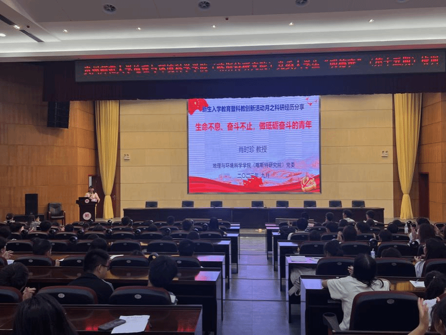 肖时珍教授以“生命不息、奋斗不止、享受过程、快乐生活”为主题开展了培训。她结合个人的整个求学经历,生动的讲述了个人在人生关键十字路口的选择,以及个人如何在面临变故时及时调整方向和思维,树立起对地理学科的认同和对所学专业的信心,最终寻找到热爱的研究领域并为之执着坚持和付出,无怨无悔追求理想的故事。针对大家关心的时间分配、英语学习、学生科研参与和考研、未来发展方向选择等方面的问题进行了深入的交流,希望积极培养对专业的热爱,保持对知识的渴求,并对同学们大学期间的学习生活提出了诸多建议,勉励大家自信、勤奋、努力、上进,知难而进,保持一种奋斗的人生追求和态度,生命不息,奋斗不止,做砥砺前行的青年!