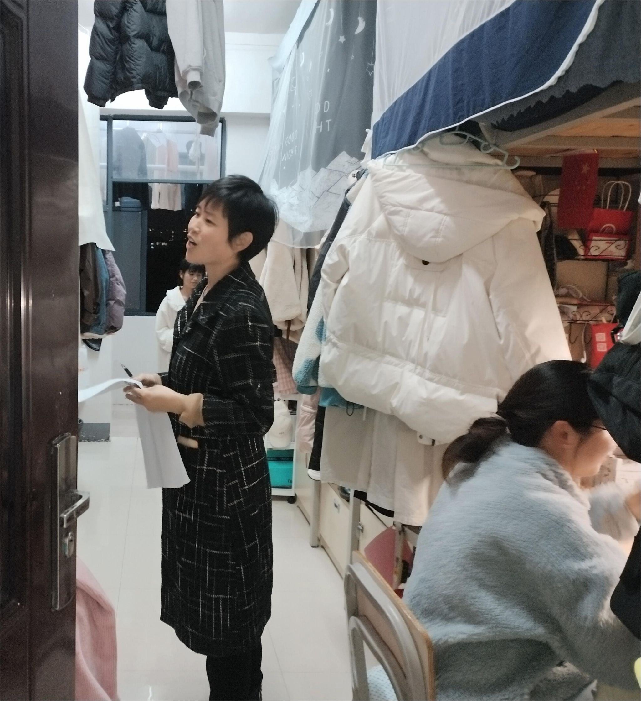期末与凛冬同时到来,辅导员老师们深入寝室,对学生们嘘寒问暖并进行冬季消防安全知识宣传;关心学生期末的学习状态,提醒大家劳逸结合,诚信考试;叮嘱同学们珍惜同寝情谊,互帮互助,打造良好的寝室氛围。