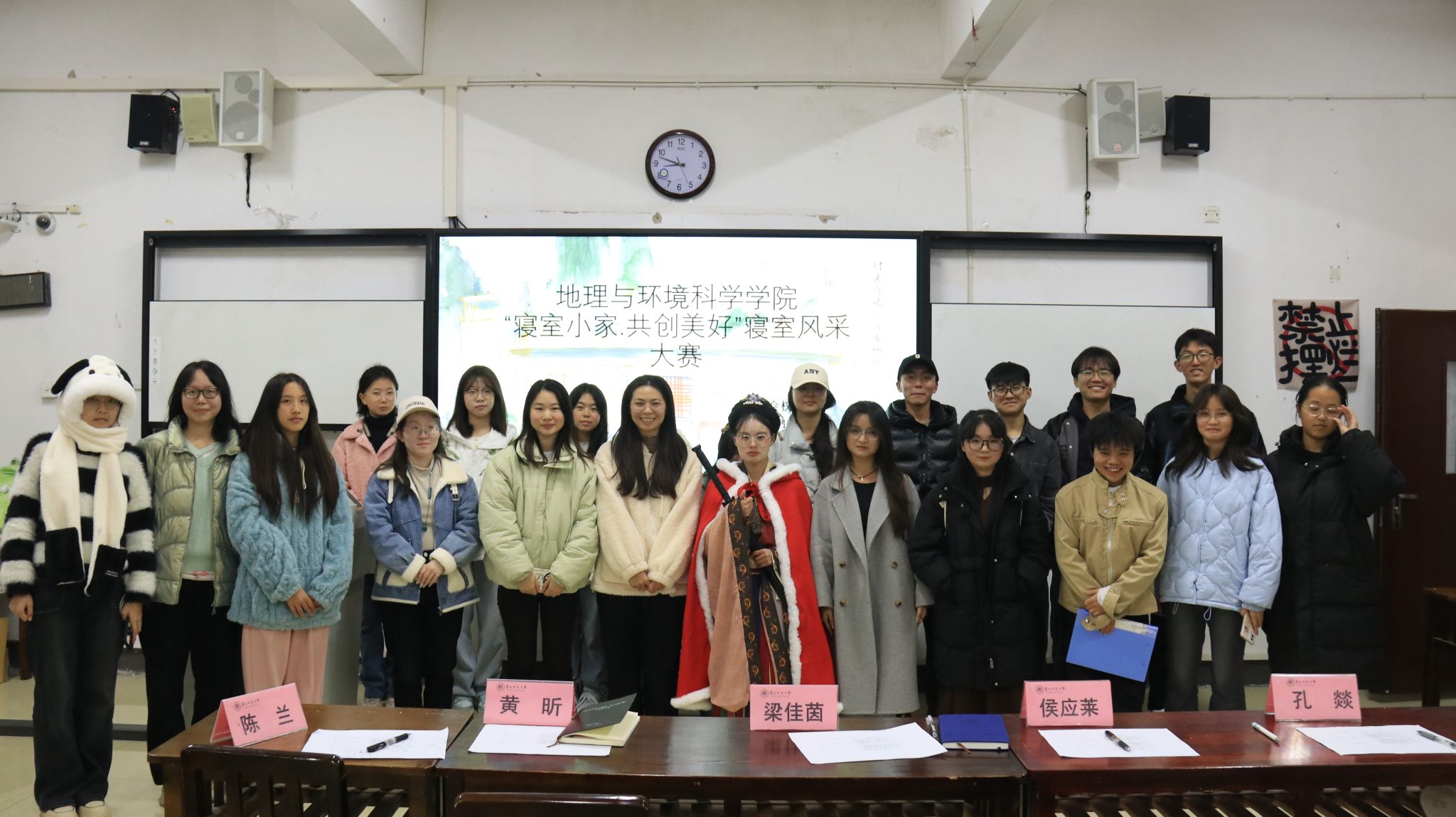 11月24日晚,必赢242net官网“寝室小家·共创美好”寝室风采大赛线下汇报在地环学院3202教室顺利开展。辅导员侯应莱、梁佳茵,学生会主席团成员黄昕、孔燚、陈兰担任线下汇报评审,现场60余名观众全程参与。