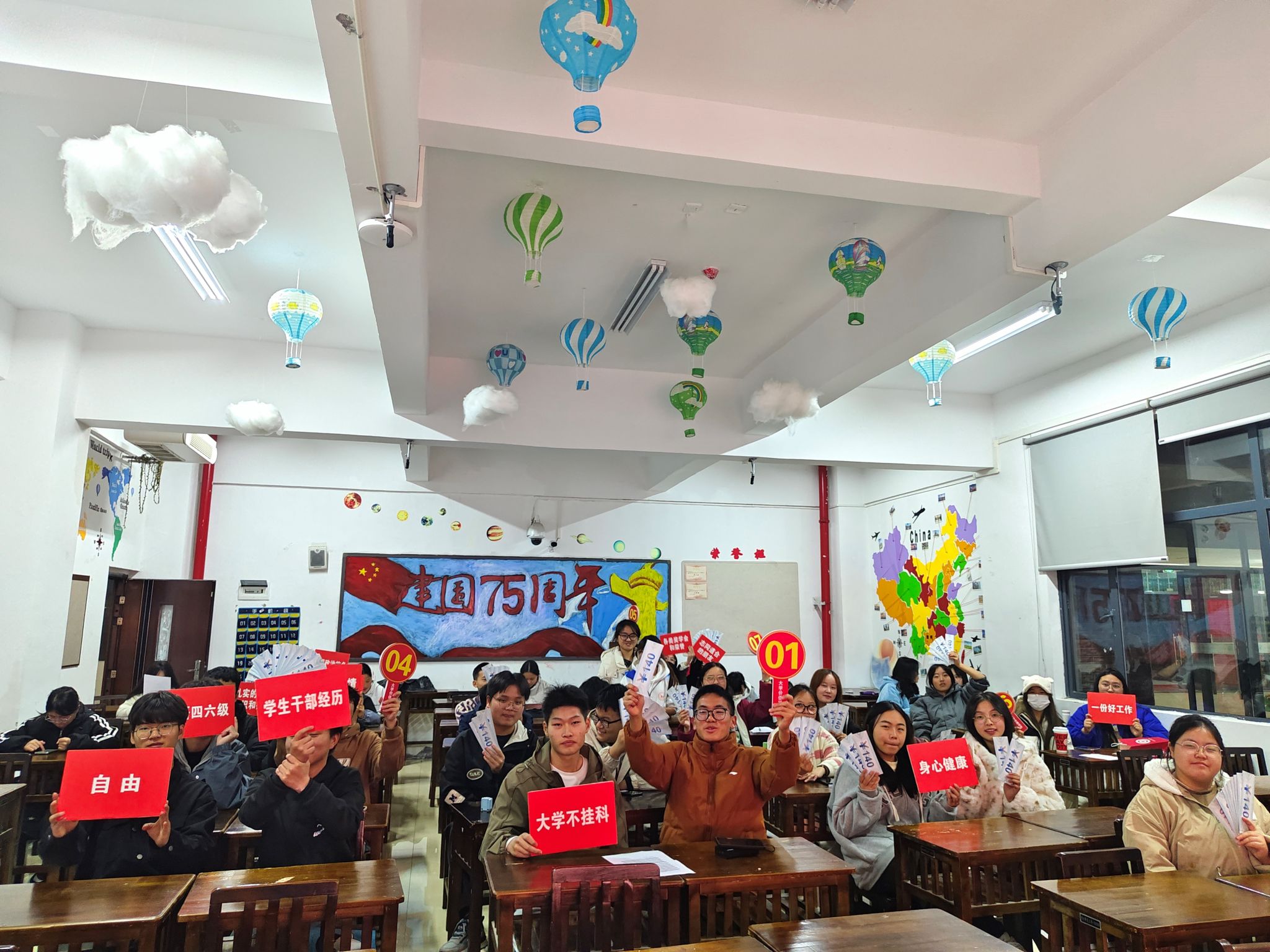 11月下旬,“大学价值拍卖”火热进行。各班分组进行拍卖活动,每个小组发放8000元的筹码,主持人列举拍卖物品清单,各小组公平竞拍。拍卖物品涵盖了各种大学期间可能追求的价值,分别为英语四六级、平安、一份好工作、大学不挂科、身心健康、各类奖学金和荣誉、自由、志同道合的朋友等15件拍品。同学们积极参与竞拍,在这个过程中,大家认真思考自己在大学期间真正看重的价值,也更加明确了自己的人生目标。