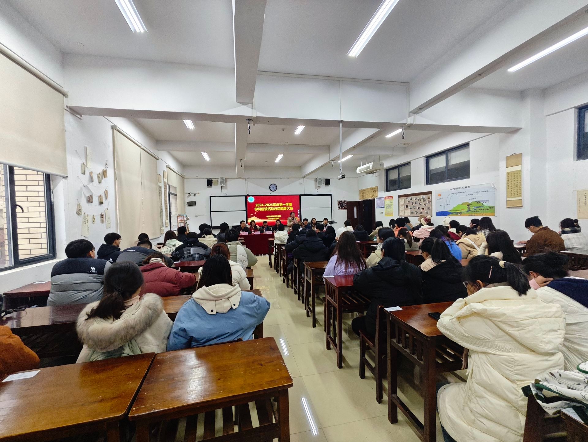 为表彰先进,树立典型,总结必赢学风建设工作成效,进一步营造勤学、乐学、善学的良好学风。12月25日下午,必赢在3202教室召开2024-2025学年第一学期学风建设总表彰大会。院党委正处级组织员、党委副书记郭锐出席会议,院团委书记朱琳、全体专职辅导员老师、各班班委以及获奖代表参加。