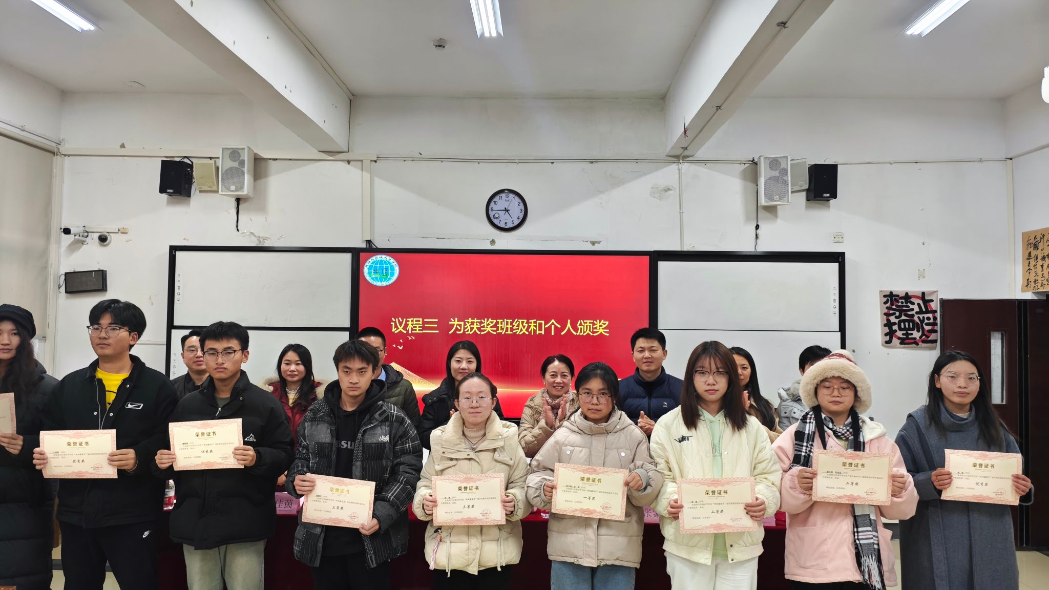 随后,朱琳宣读学风建设表彰名单,与会领导和老师为获奖的班级和个人颁发证书、奖品。