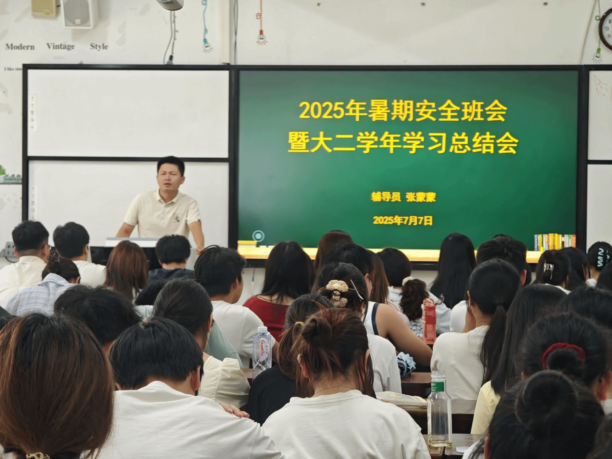 班会上,辅导员结合真实案例,围绕国家安全、交通安全、防溺水、消防安全、网络诈骗、食品安全、自然灾害应急等多个重点领域进行宣传教育。随后,辅导员叮嘱学生们要将暑假充分利用起来,合理安排,切勿虚度光阴。